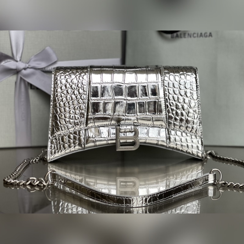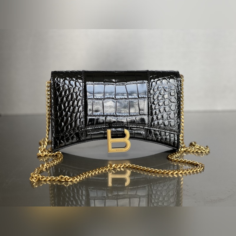 Balenciaga Crocodile Gold Buckle Hourglass Mini Chain Bag