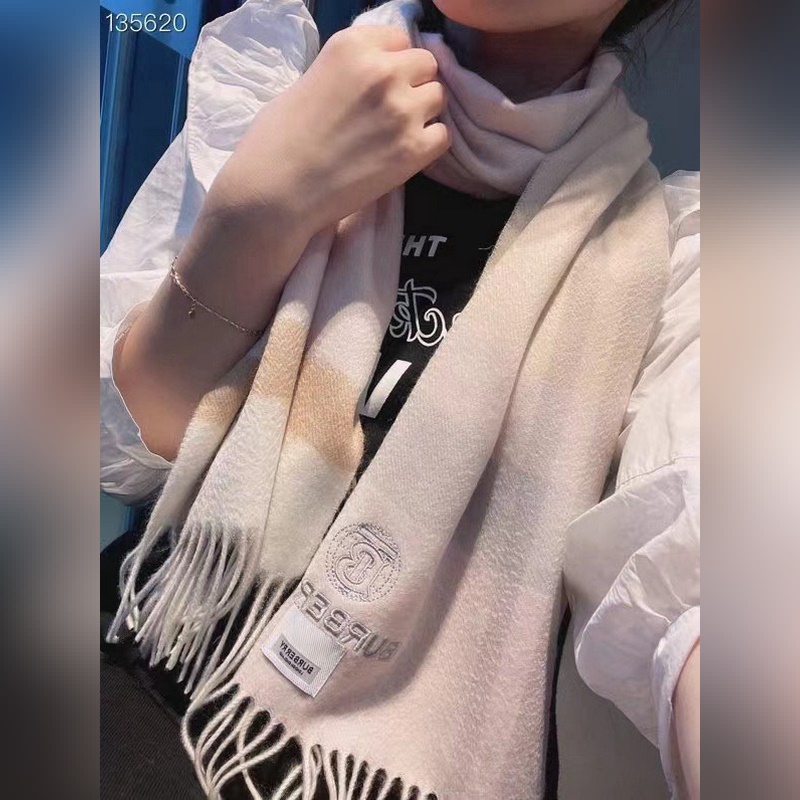 Burberry Cashmere Long Scarf with B Logo VIP Recommended