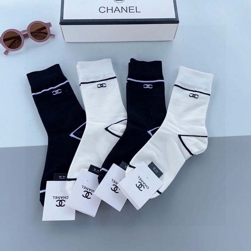 CHANEL Classic Mid-Calf Socks Premium Cotton Soft Set of 4 Pairs