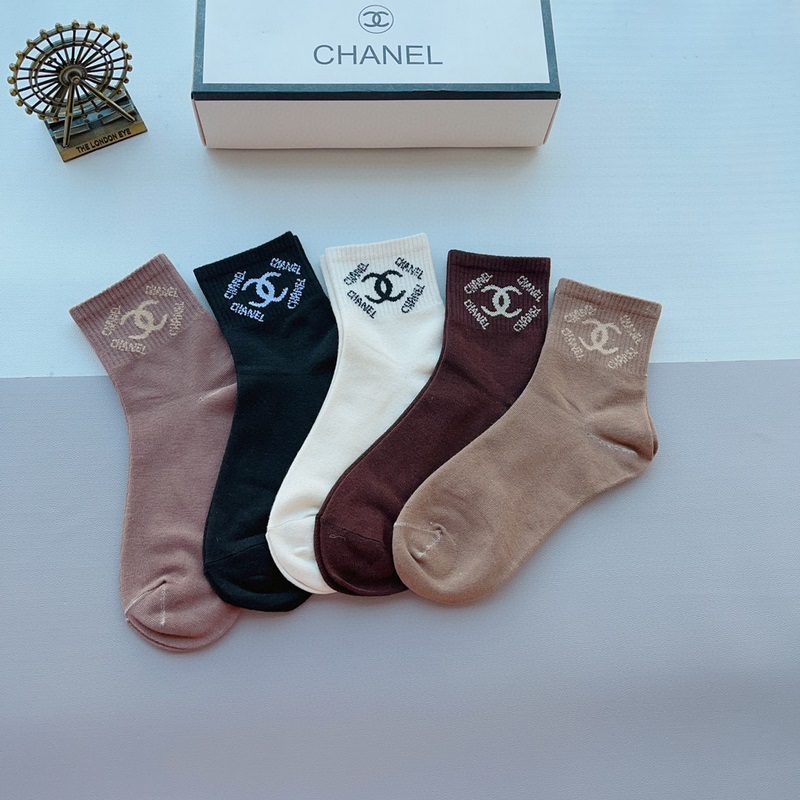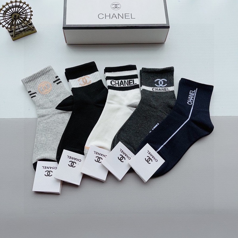 CHANEL Classic Mid-Length Cotton Socks Soft High Version (5 Pairs)