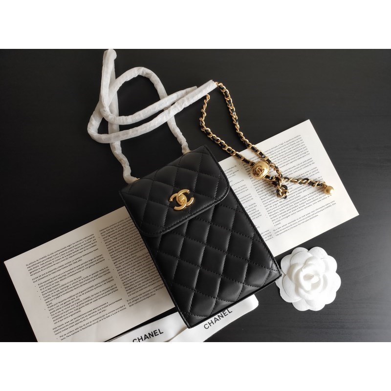 Chanel Double C Lambskin Gold Chain Adjustable Phone Bag