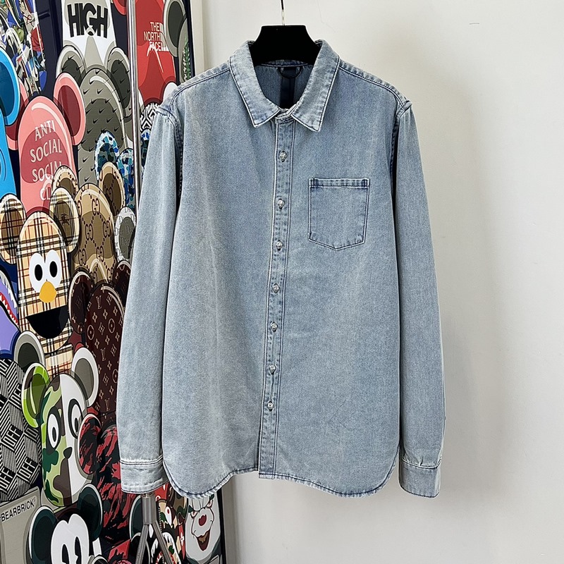 Krohsin Vintage Blue Washed Denim Jacket with Cross Embroidery