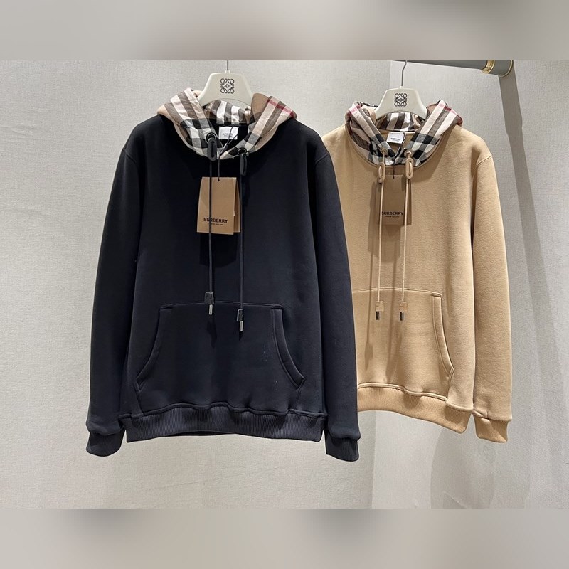 Burberry Premium Check Hooded Couple Casual Half-Zip Cotton Hoodie