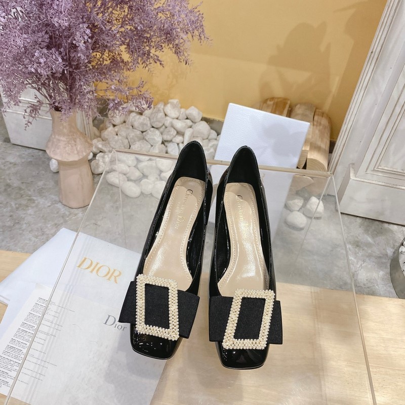 Dior ldyle Pearl Buckle Vintage Ballet Heels with Patent Leather