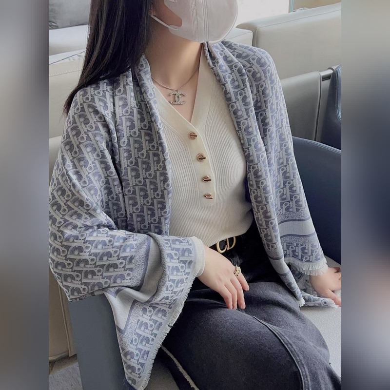 Dior CD Jacquard Logo Multifunctional Scarf Blanket Cashmere 57%