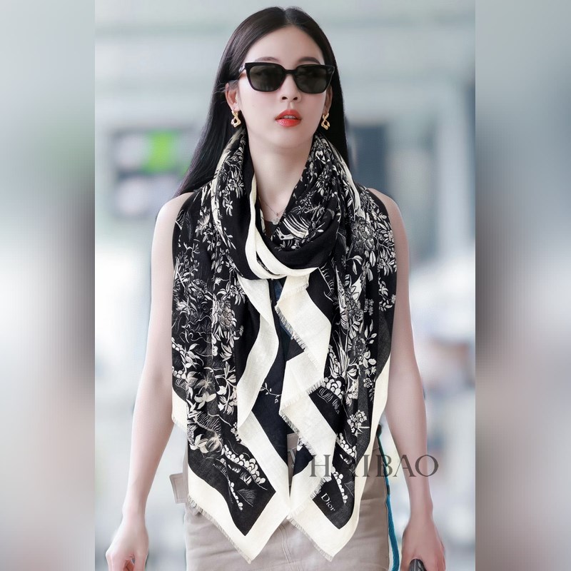Dior Classic Scarf Shawl Silk-Wool Blend Elegant Texture