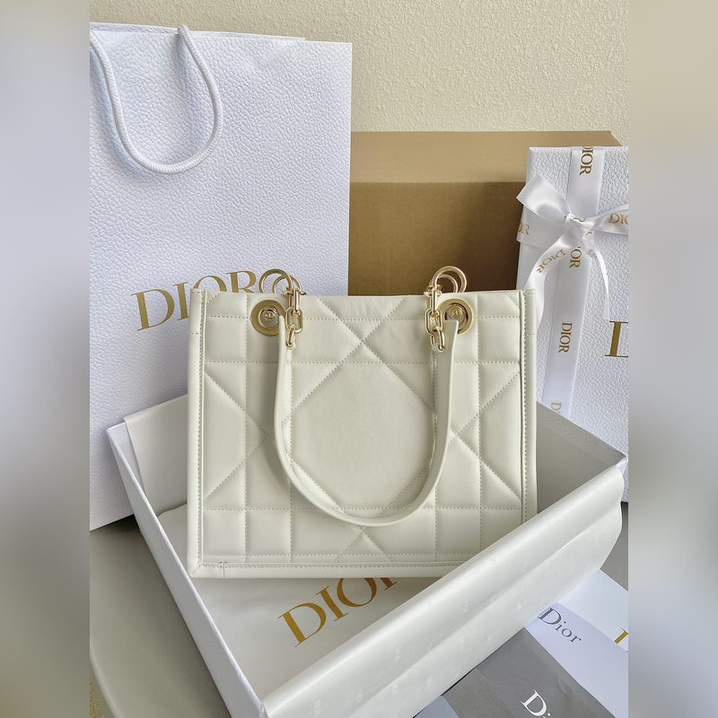 Dior Lady Dior White Lambskin Top Quality Flap Bag