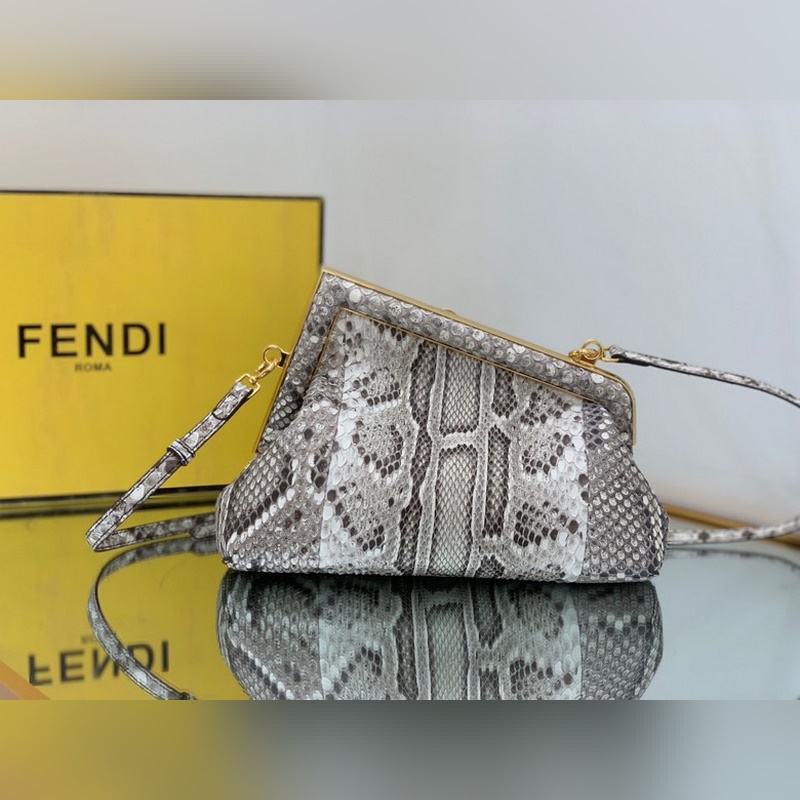 FENDI Small Handbag White Python Leather with F Buckle