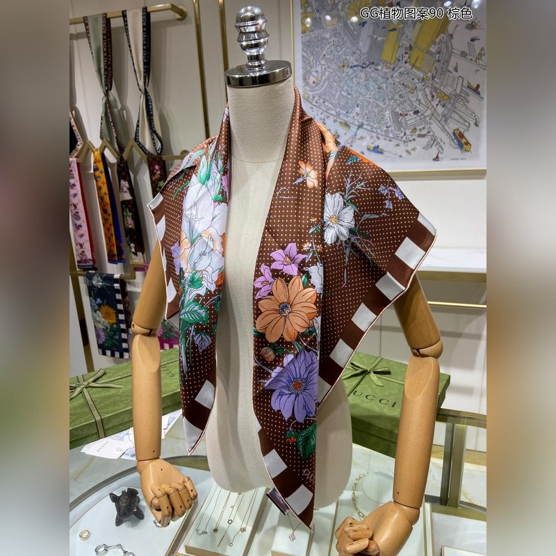 GUCCI GG Botanical Pattern 90 Silk Scarf 100% Premium Twill Silk