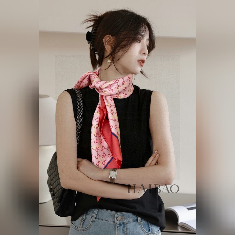GGC GG Horsebit Silk Scarf 90cm Double-Sided Print