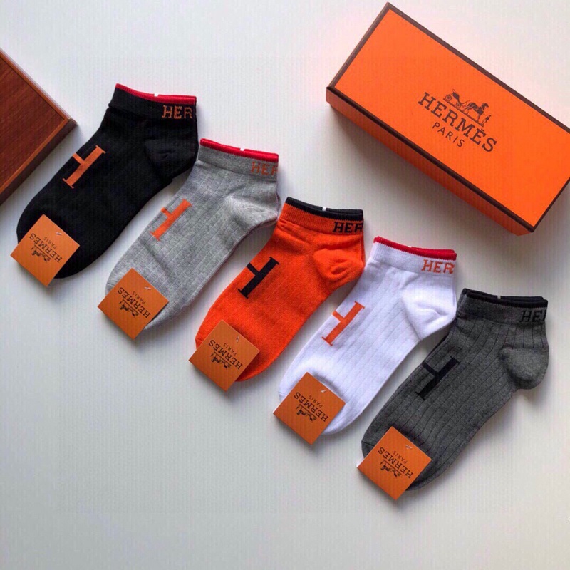 HERMES Classic Short Socks Original Box with 5 Pairs Premium Quality