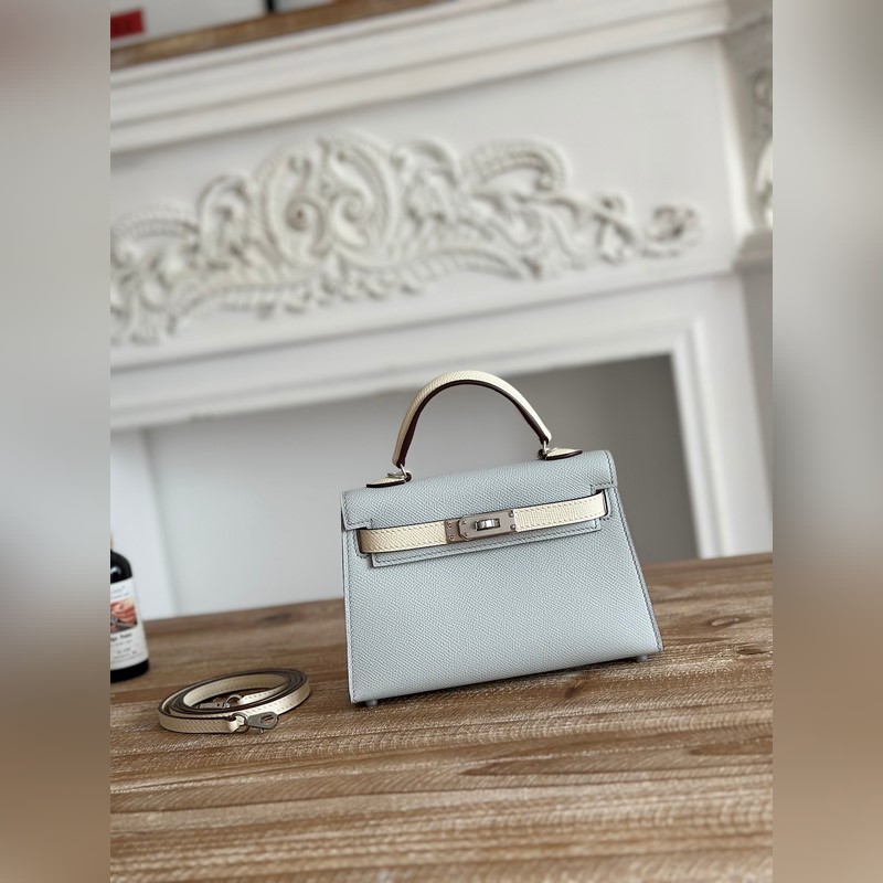 Kelly II Mini Epsom White with Silver Hardware Motorcycle + Half-Recessed