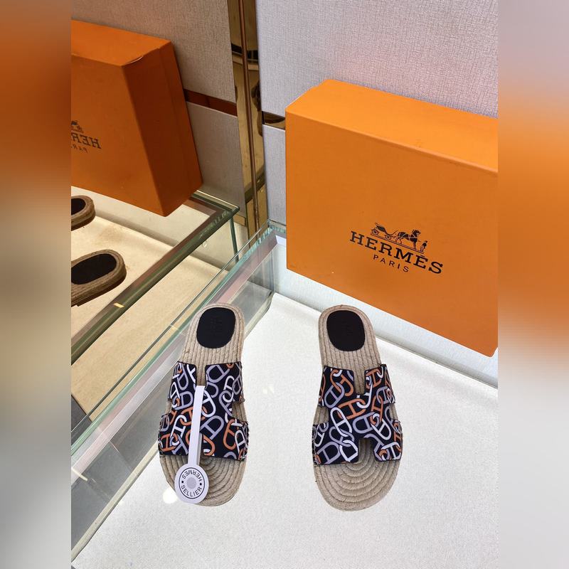 Hermes 2022 Antigua Leather-Soled Grass Weave Slippers