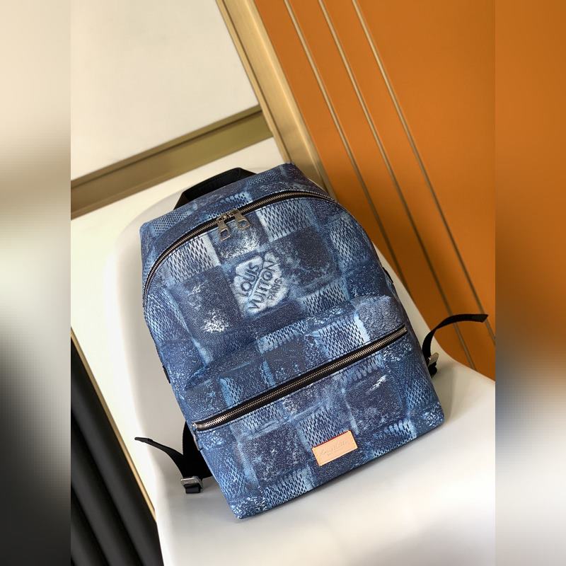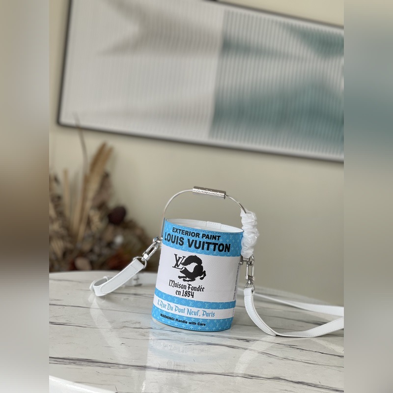 LV M81597 Blue Handbag with Metal Handle Bucket Shape