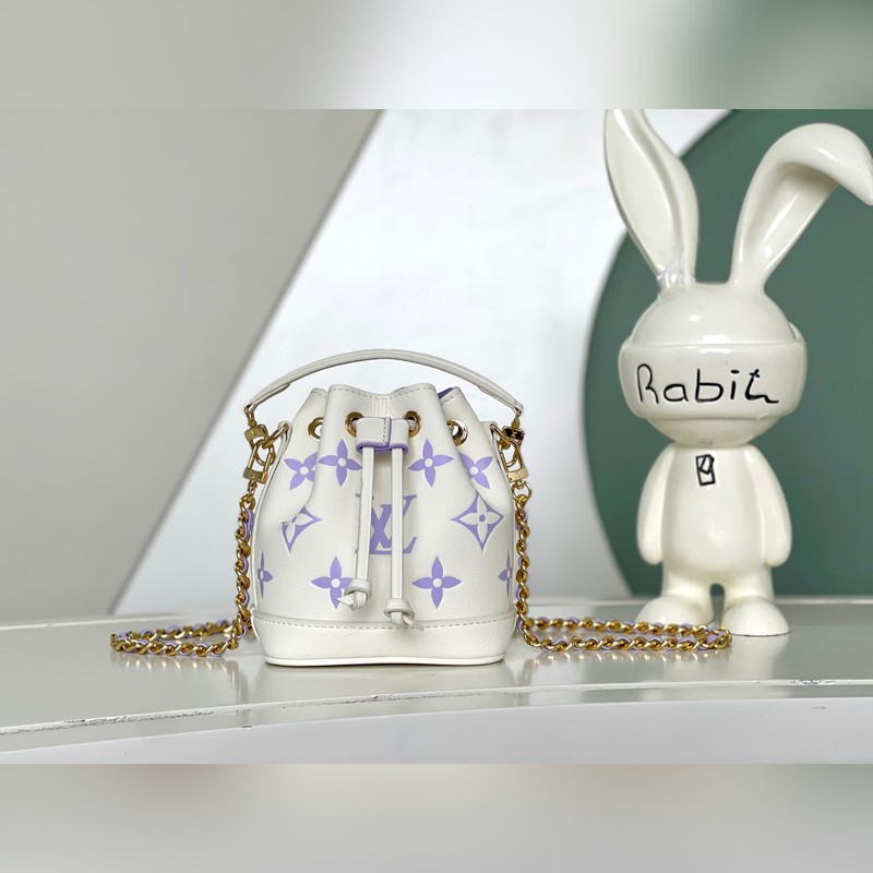 Louis Vuitton Nano NoE M82933 Purple Silk Print Embossed Almond Leather