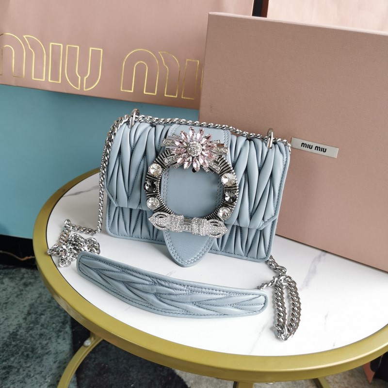 Miumiu Chain Replica Bag Misty Blue 5BD084 Quality Design