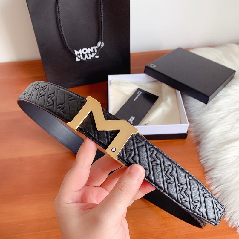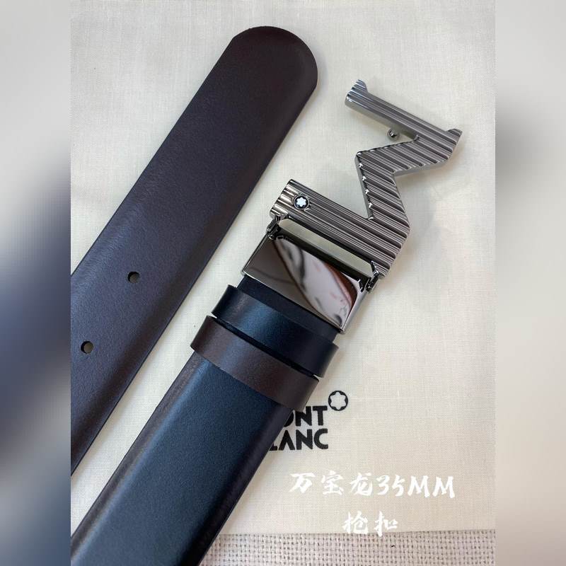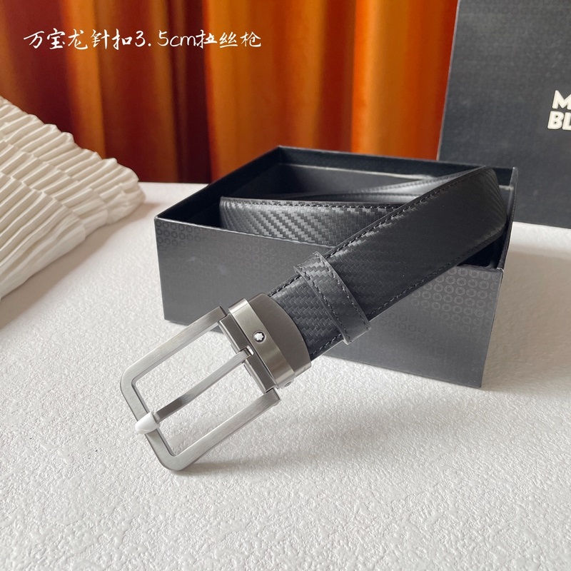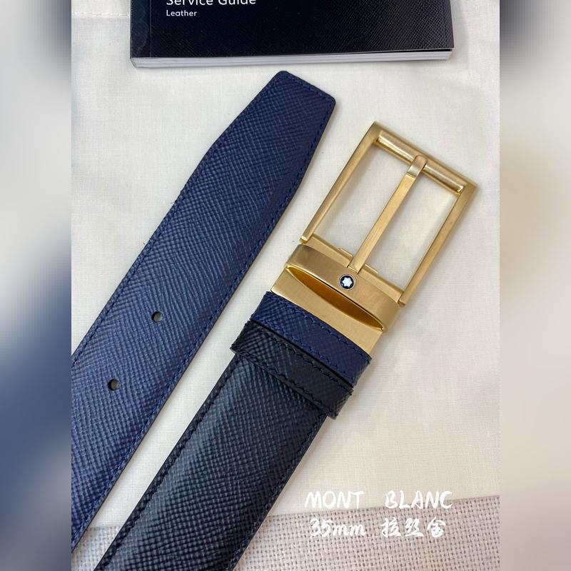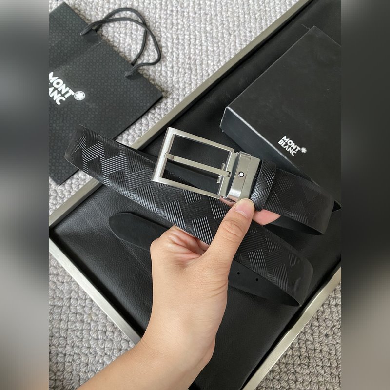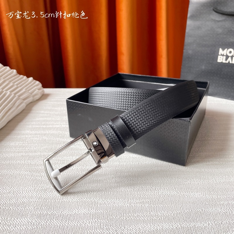 Montblanc Leather Belt 3.5CM Premium Top Grain Adjustable Pin Buckle