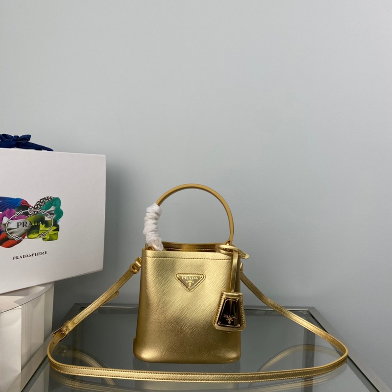 Prada 2023 Early Spring 1BA373 Gold Bucket Replica Bag Elegant Quality