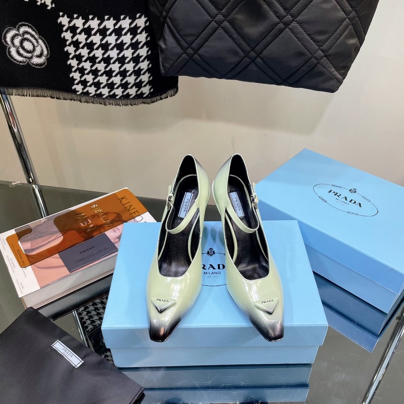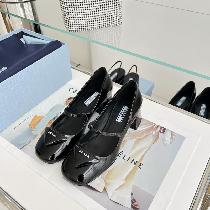 Prada Triangle Logo Mary Jane Chunky Heels Original Leather Quality