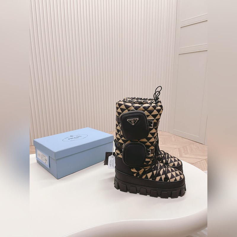 PRADA Premium Thick Sole Pocket Triangle Couple Boots 1:1 Custom