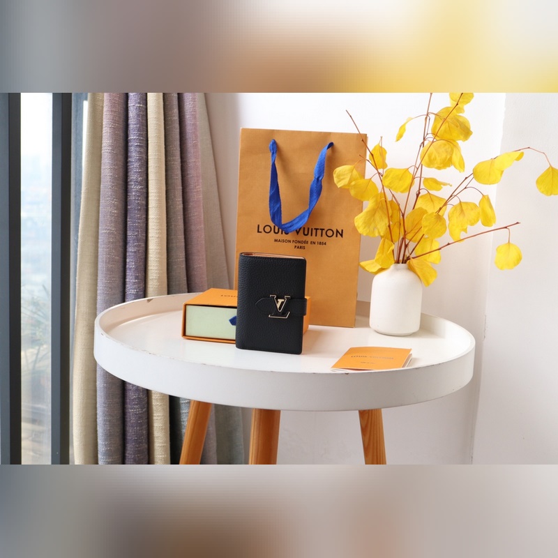 LV Vertical M81561 Black Taurillon Leather Short Wallet