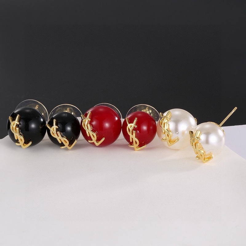 YSL Pearl Stud Earrings with Logo Exquisite Design
