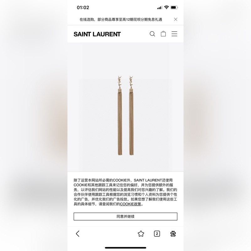 YSL Saint Laurent Original Brass Earrings Quality Fashion Jewelry