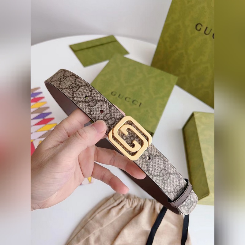 Gucci Reversible Brown Canvas and Pigskin Leather Belt 3.0cm Width