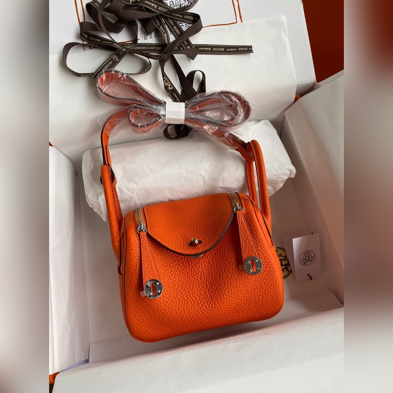 Hermès Lindy Handbag Imported TC Leather Orange Gold Silver Hardware