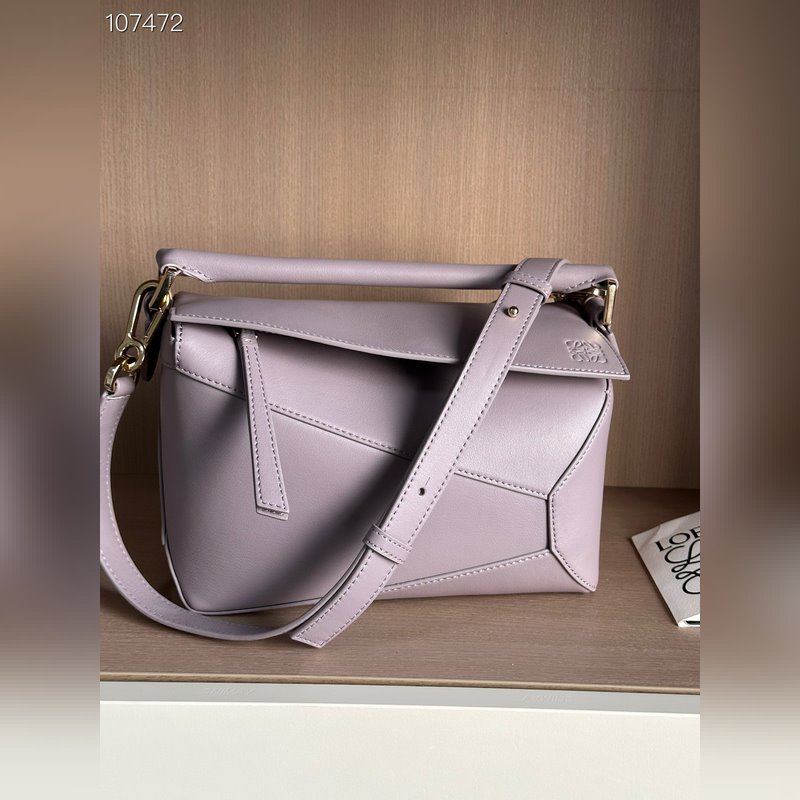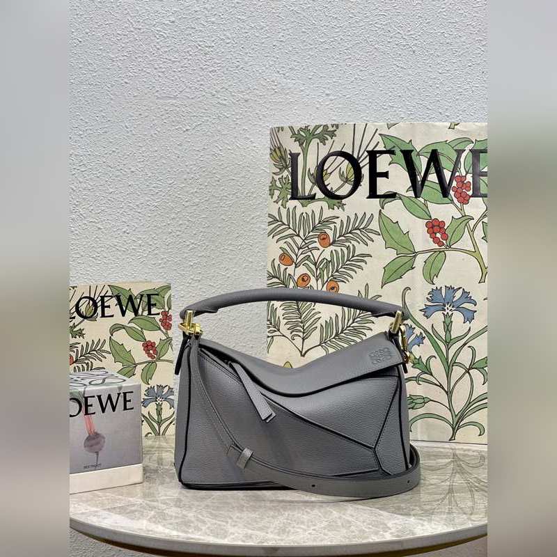 Loewe Puzzle Geometric Design Handbag Shoulder Replica Bag Lychee Gray