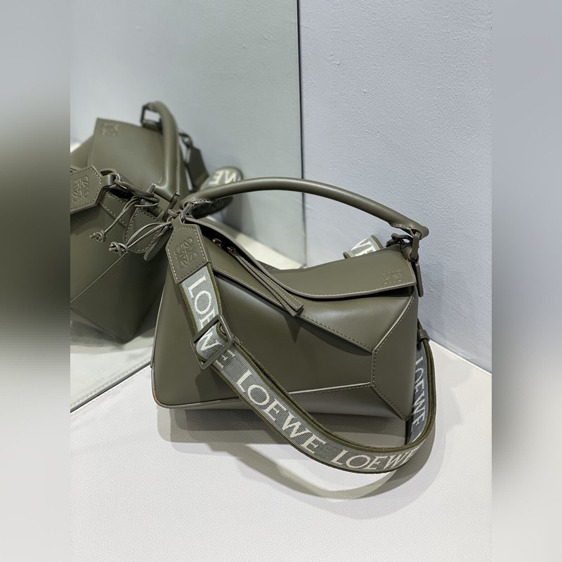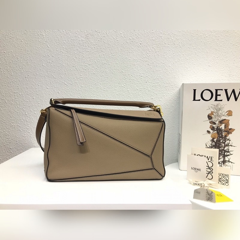 Loewe Puzzle Geometric Design Handbag Shoulder Replica Bag Khaki Grain
