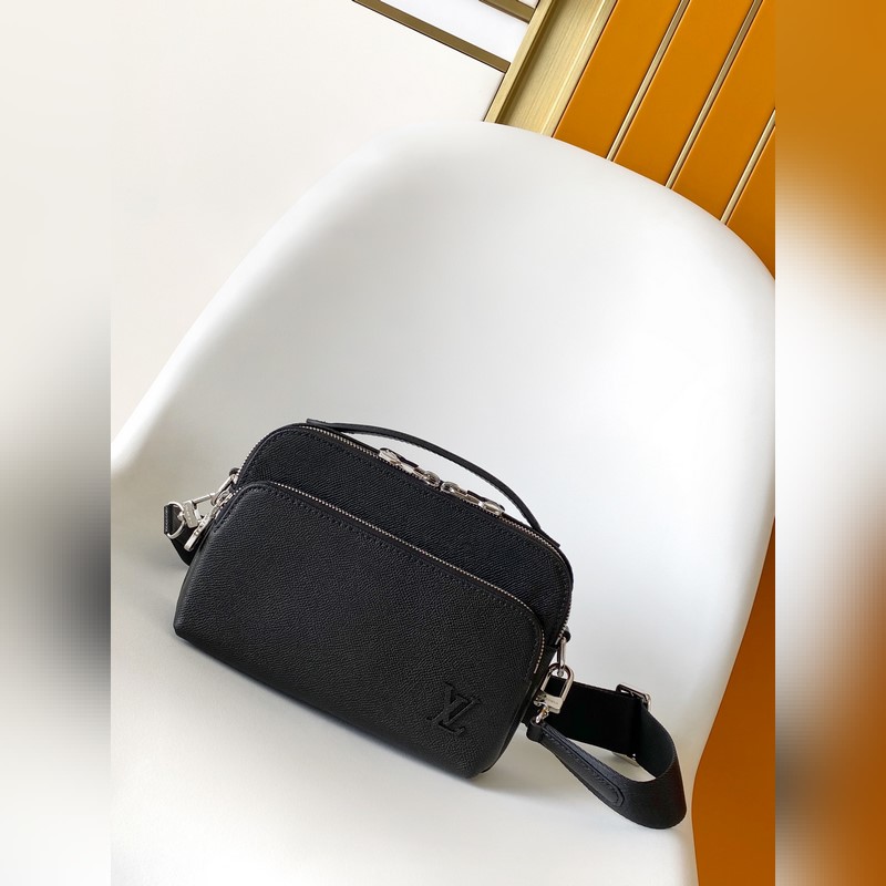 LV N58040 TRIO Black Checkered Silk Print Men’s 3-Piece Messenger Bag