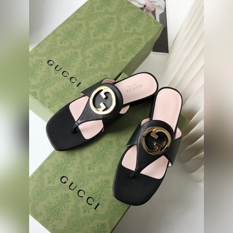 GUCCI Blondie Double G Flat Slide Sandals in Black