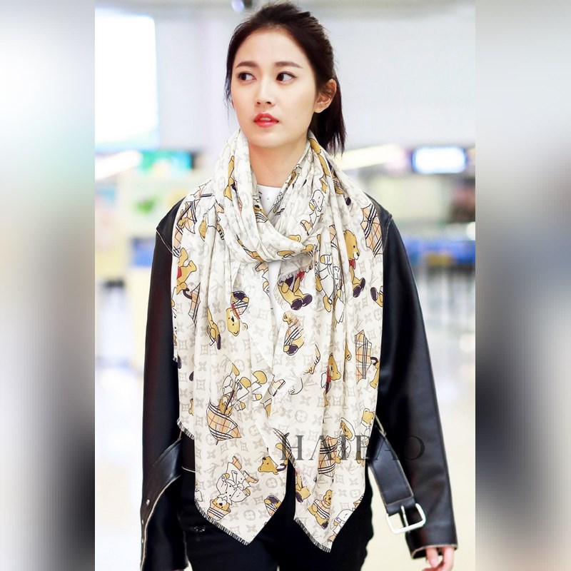 Luxury Wool Cashmere Scarf Burberry x Louis Vuitton Bear Pattern