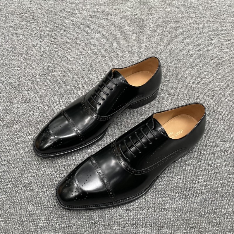LV Men’s Classic Oxford Dress Shoes Almond Toe Brogue Quality Leather