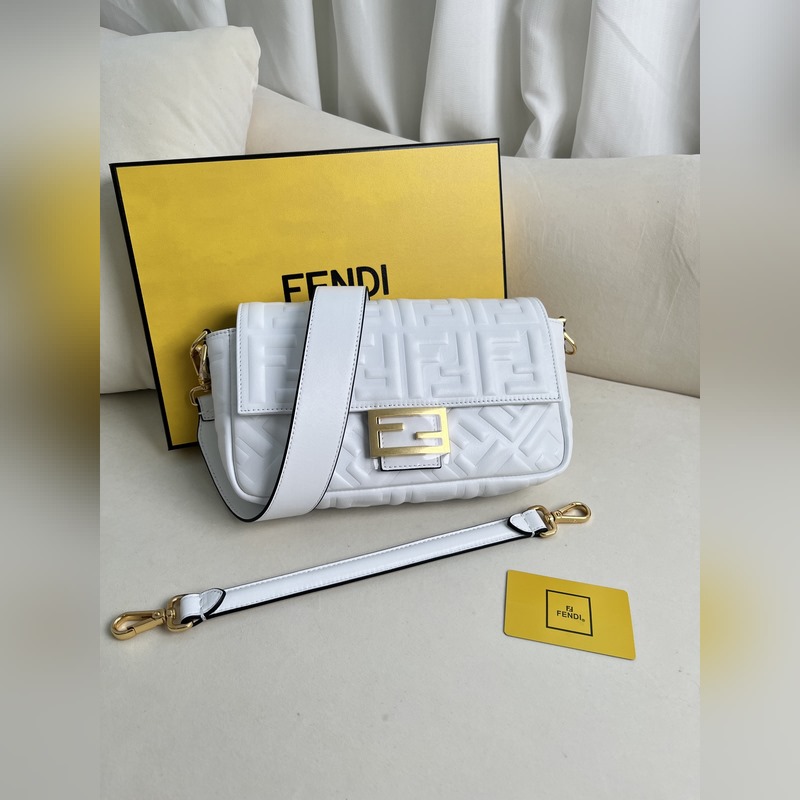 Iconic White Baguette Leather Handbag High-Quality Fashion Accessory