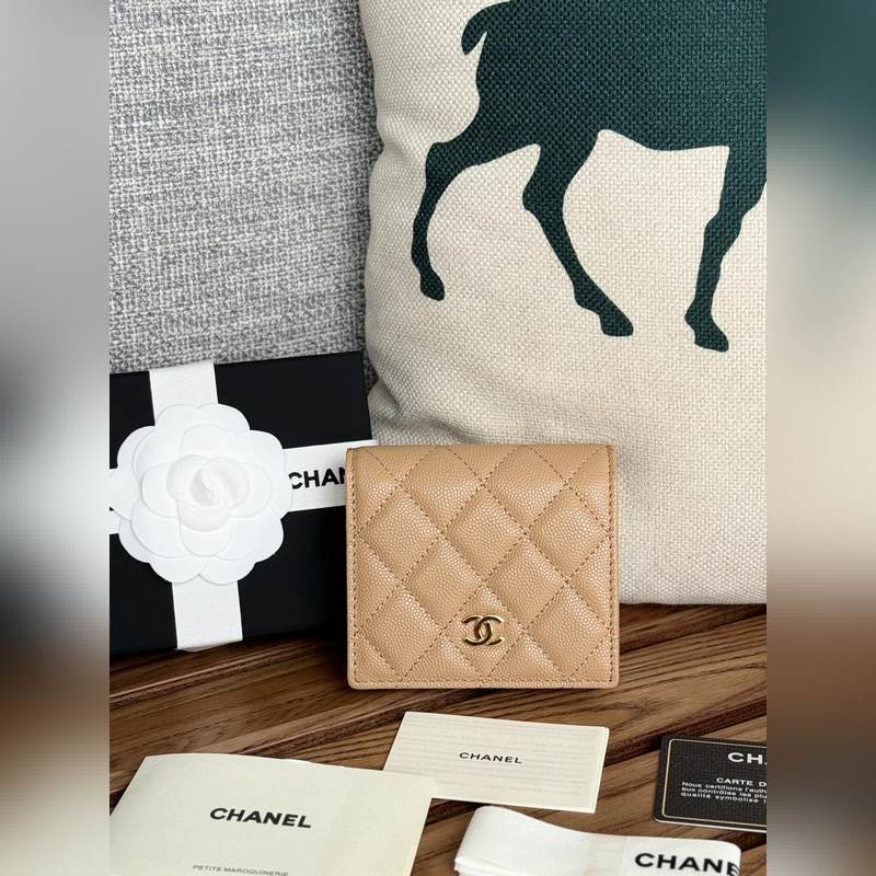 Chanel 2025 New Half-Price Short Wallet Leather with Coin Pocket