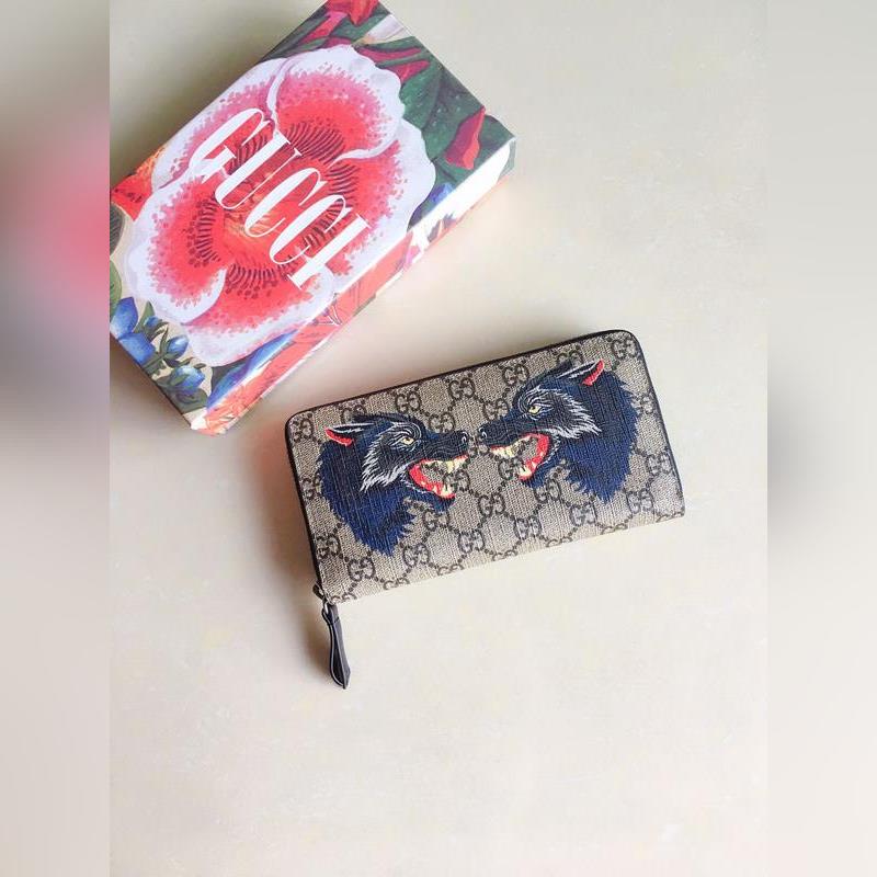 GUCCI Double Wolf Head Silk Print Men’s Wallet Model 451273